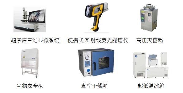其他理化生實(shí)驗(yàn)室設(shè)備:超景深三維數(shù)碼顯微系統(tǒng)、便攜X射線熒光能譜儀、便攜式pH計(jì)、恒溫恒濕試驗(yàn)箱、生物安全柜、智能恒濕凈化一體機(jī)、高壓滅菌鍋、輻射照度儀、生化培養(yǎng)箱、真空干燥箱、純水設(shè)備、生物冰箱等。