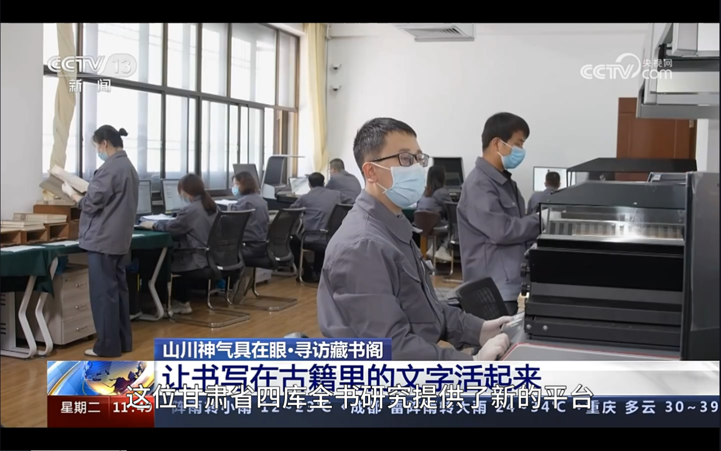 工作人員采用賽數(shù)古籍掃描儀掃描文溯閣《四庫全書》